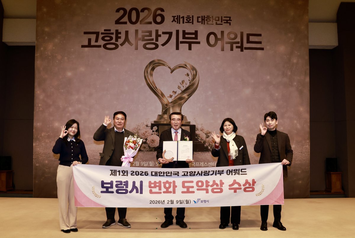 [충청25시] 보령시는 ‘제1회 2026 대한민국 고향사랑기부 어워드’에서 시 부문 변화도약상을 수상했다고 밝혔다.