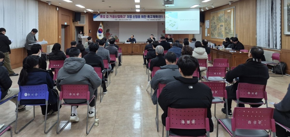 [충청25시] 홍성군은 ‘홍성 김 가공산업특구’지정 신청을 위해 수립 중인 특구계획과 관련해 주민 의견을 수렴하는 주민공청회를 지난 23일 개최했다.