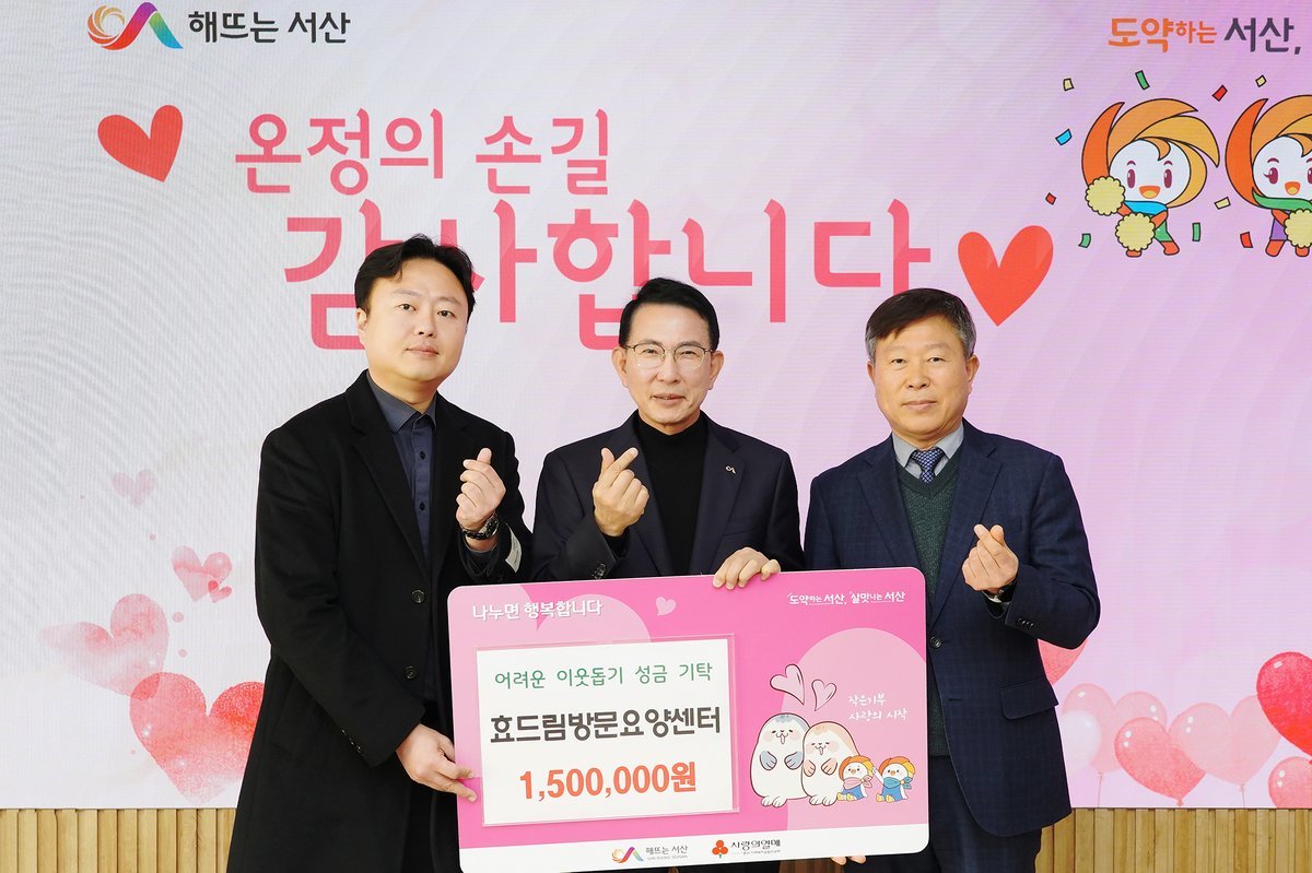 이완섭 서산시장은 “따뜻한 나눔에 동참해 주신 것에 감사드린다”라며 “소중한 성금이 도움이 필요한 아이들의 교육과 건강한 성장을 지원하는 데 쓰일 수 있도록 최선을 다하겠다.”라고 말했다.