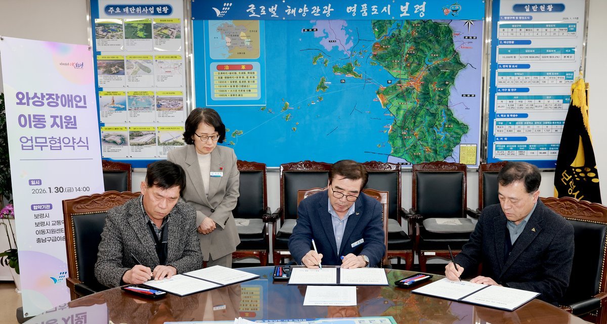 [충청25시] 보령시는 30일 시청 시장실에서 보령시 교통약자 이동지원센터와 충남구급이송센터가 함께‘와상장애인 이동 지원’시범 운영을 위한 업무협약을 체결했다.