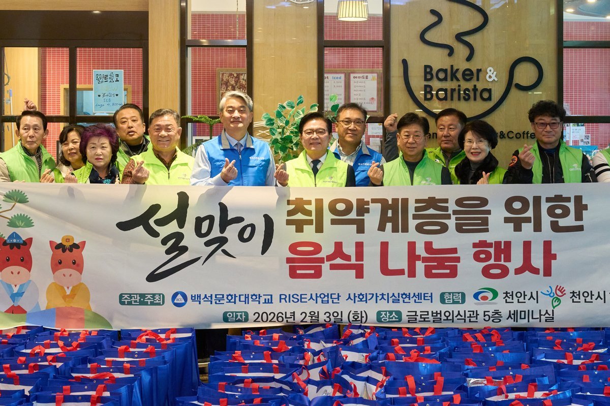 [충청25시] 천안시는 3일 백석문화대학교 글로벌외식관에서 행복키움지원단, 백석문화대 RISE사업단과 함께 '설맞이 취약계층 음식 나눔 행사'를 개최했다.