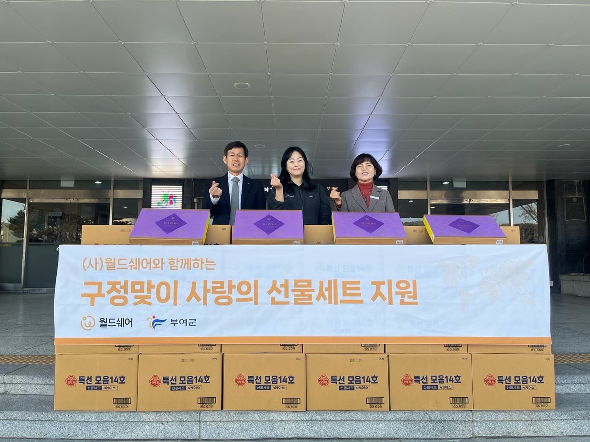 월드쉐어, 부여군에 선물 세트 150개 기탁
