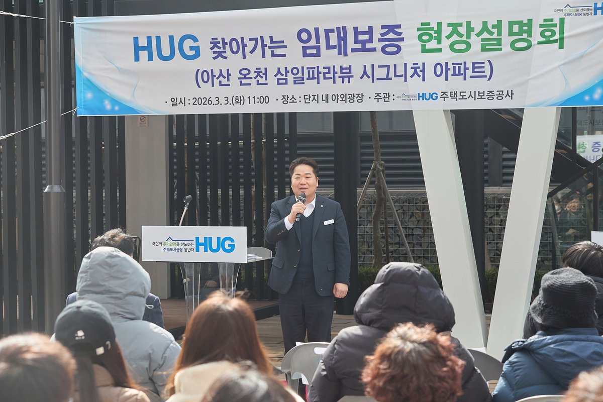 [충청25시] 아산시는 3일 온천동 삼일파라뷰 시그니처 단지 내 광장에서 주택도시보증공사와 함께 임대보증금 보증이행 관련 현장설명회를 열고 임차인 보호 대책과 향후 절차를 안내했다.