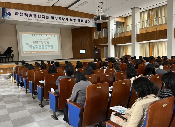 [충청25시] 대전동부교육지원청은 10월 29일 동부교육지원청 강당에서 대전 동부 관내 초·중학교 학생맞춤통합지원 업무담당자 231명을 대상으로 역량 강화 연수를 실시했다고 밝혔다.