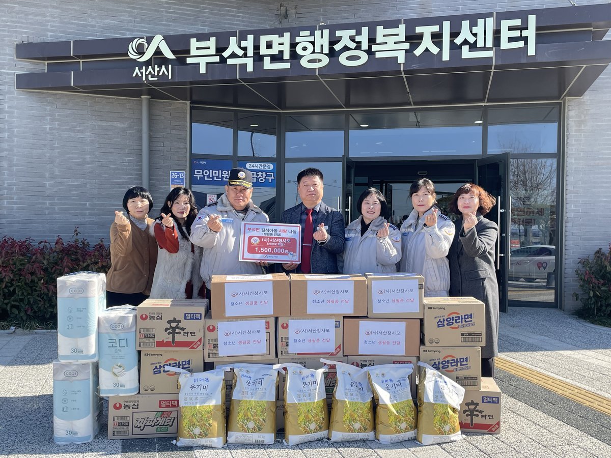 [충청25시] 서산청사모는 1월 28일 부석면 결식아동 3명에게 총 150만원 상당의 생필품을 기탁하며 따뜻한 나눔을 실천했다.