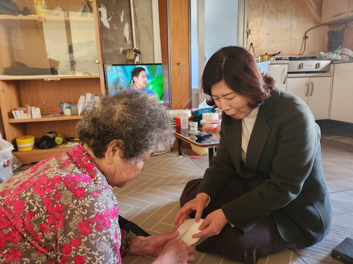영인면은 설 명절 위문품을 전달하며 어르신들의 건강과 안부를 살피고 생활 속 고충을 청취했다.