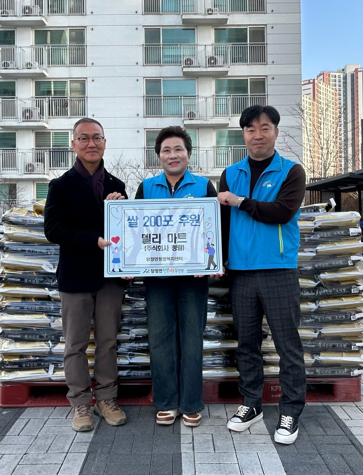 [충청25시] 탕정면 갈산리에 개점을 앞둔 아산 델리마트는 지난 14일 지역 내 취약계층 지원을 위해 백미 10kg 200포를 탕정면 행복키움추진단에 전달했다.