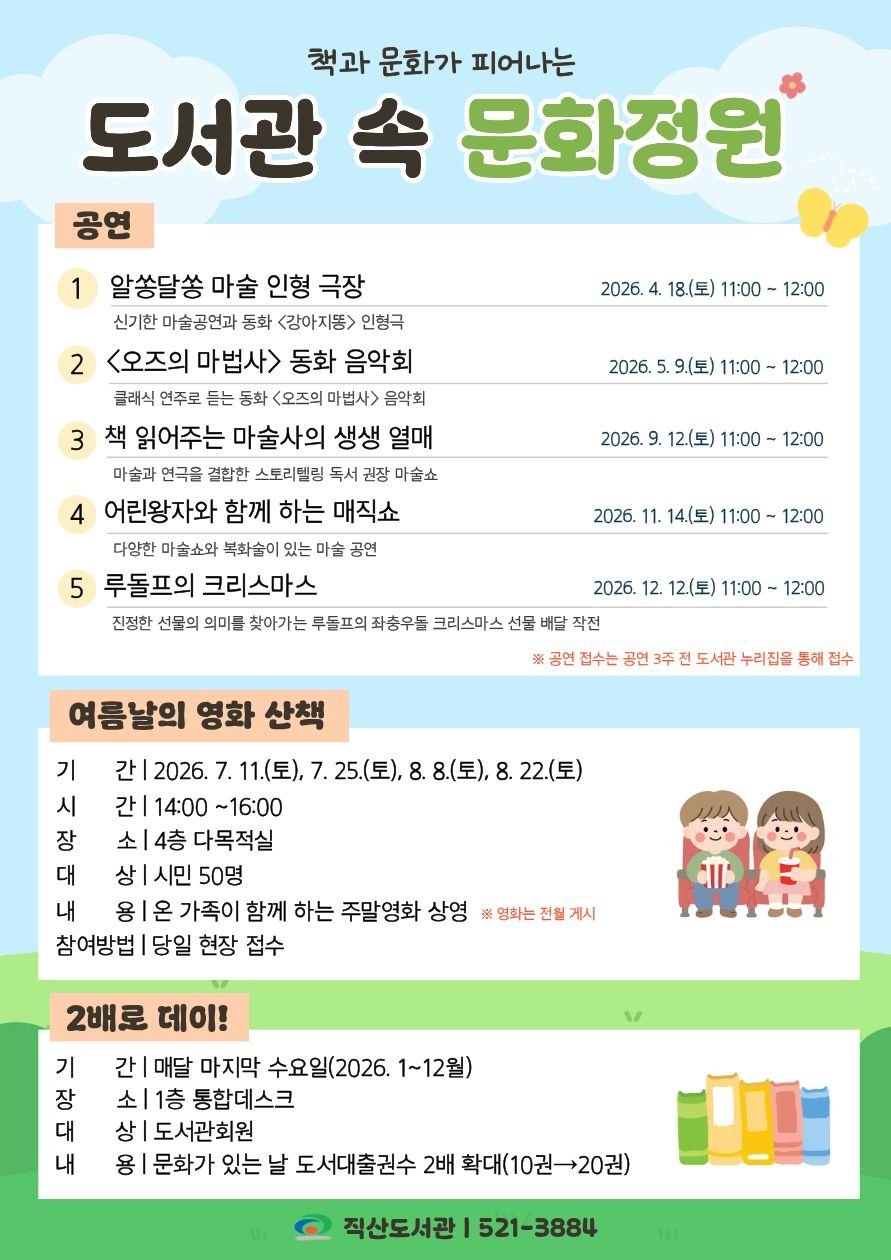 [충청25시] 천안시 직산도서관은 책과 문화가 결합된 ‘도서관 속 문화정원’을 운영한다고 26일 밝혔다.