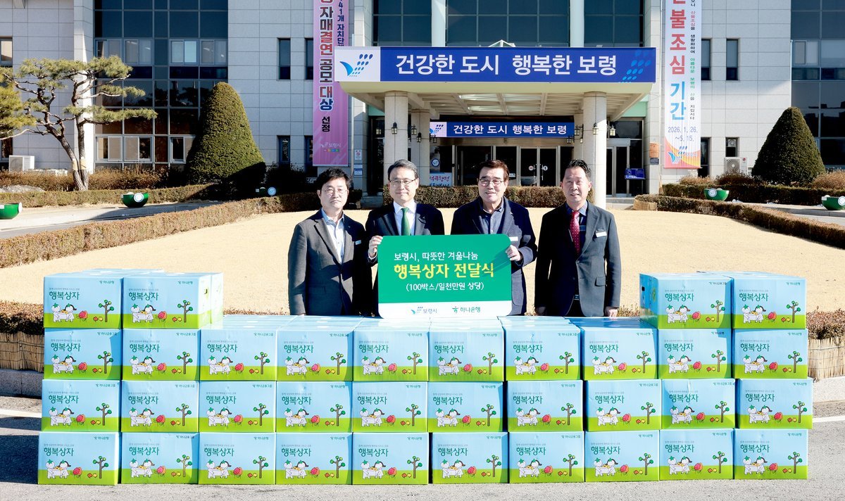 [충청25시] 보령시는 지역 내 취약계층의 겨울나기를 지원하기 위해 하나은행 대천지점과 ‘온기나눔 행복상자’전달식을 25일 시청광장에서 개최했다.