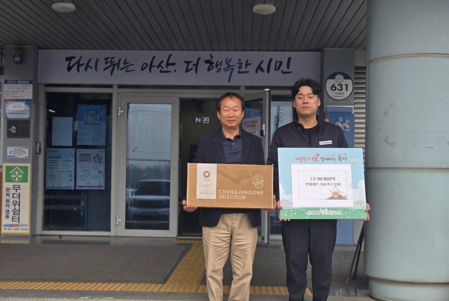 [충청25시] ㈜씨케이텍 곽철관 대표가 관내 어려운 이웃을 위한 선물세트 100개를 신창면 행복키움추진단에 전달했다.