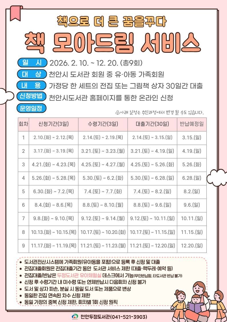 천안두정도서관, 다음달 전집 대여 서비스 '책 모아드림'운영