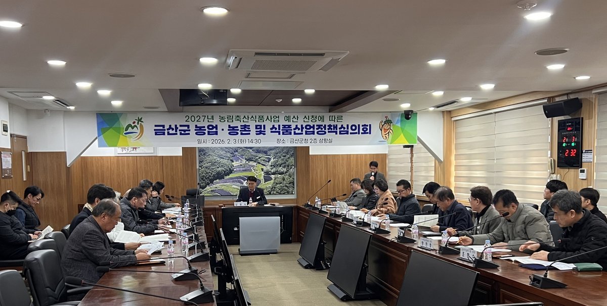 [충청25시] 금산군은 지난 3일 군청 상황실에서 농업·농촌 및 식품산업정책 심의위원과 관계공무원 등 약 40명이 참석한 가운데 2027년 농림사업 예산 신청에 따른 농업·농촌 및 식품산업정책심의회를 개최했다.