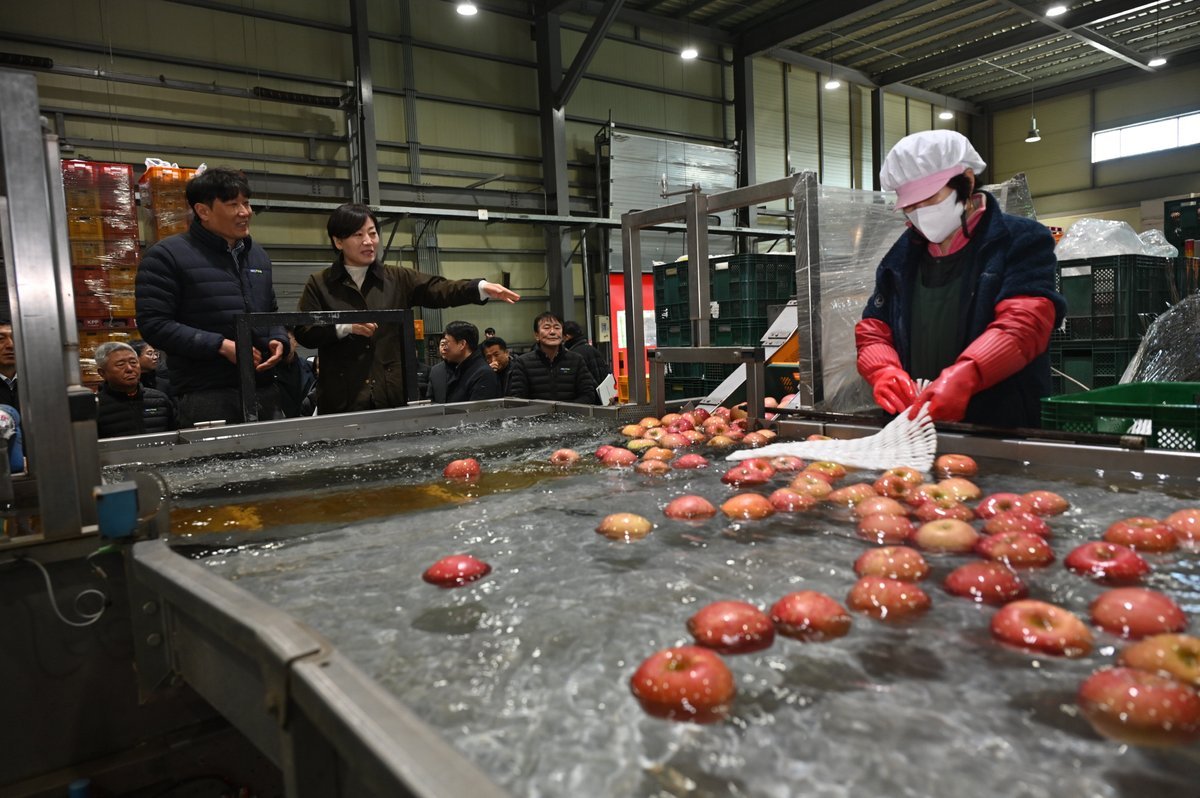 이번 방문은 설 명절을 맞아 사과 수요가 증가함에 따라 안정적인 저장 물량 확보와 원활한 공급 체계를 점검하기 위해 이뤄졌다.