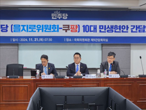 [충청25시] 더불어민주당 을지로위원회는 쿠팡의 입점자영업자, 외식자영업자, 배달라이더, 택배기사 및 물류센터 노동자 보호를 위해 시민·민생단체들이 을지로위원회에 제기한 10대 요구안을 지난 8월 쿠팡 항의방문과 함께 전달했고 이에 대한 이행상황을 점검하기 위해 쿠팡 사장단과 21일간담회를 개최했다고 밝혔다.