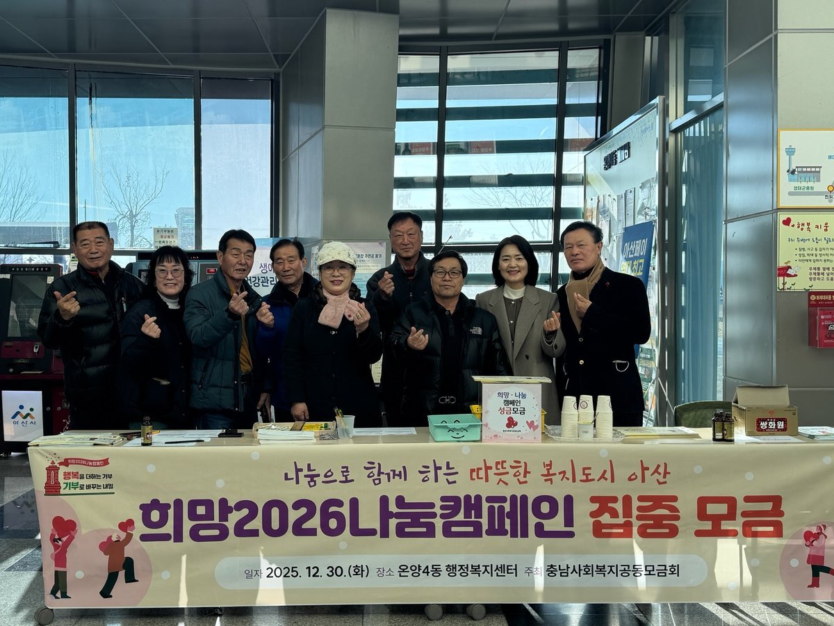 한편, ‘희망2026 나눔캠페인’은 2026년 1월 31일까지 진행되며, 기부 참여 및 문의는 온양4동 행정복지센터로 하면 된다.