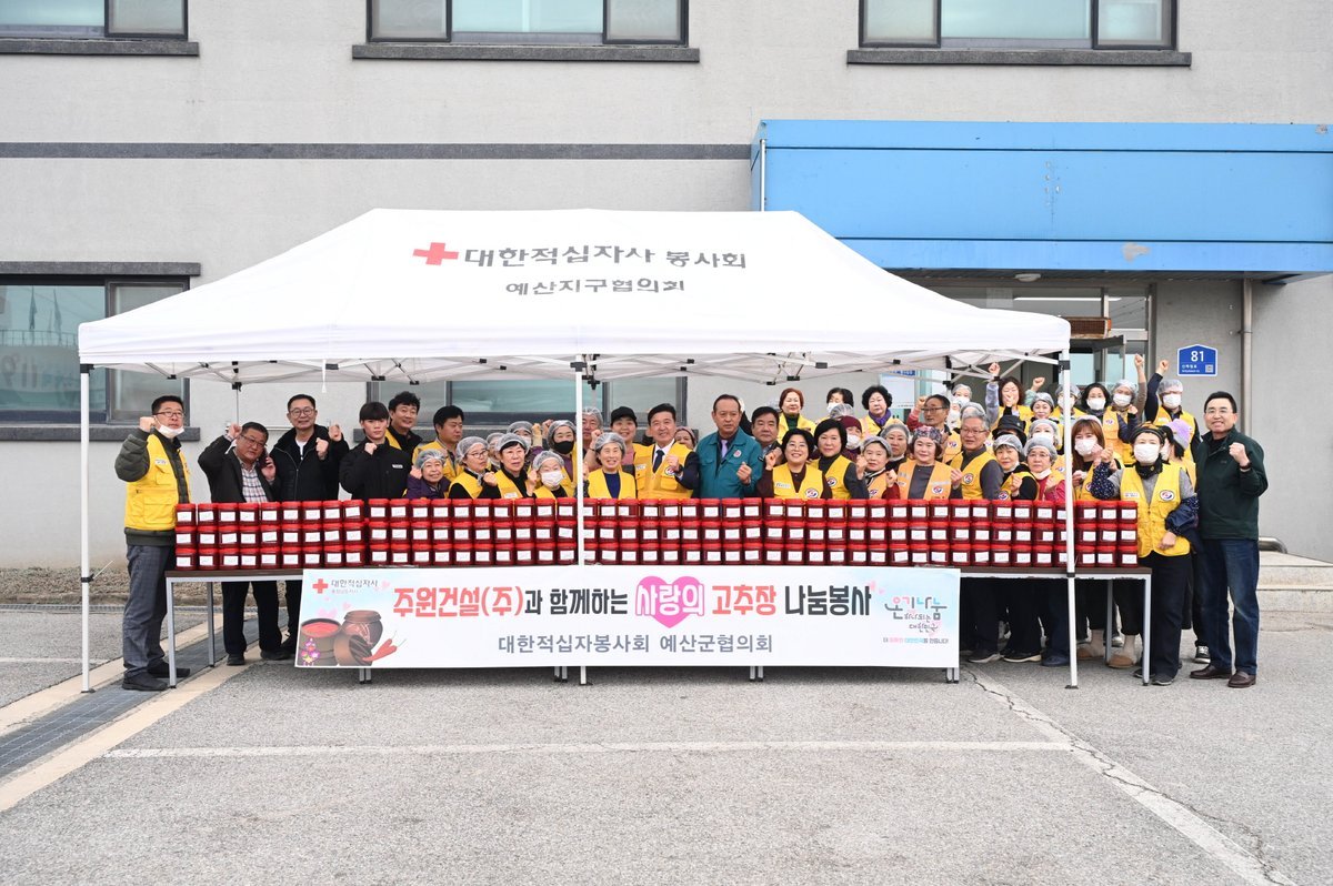 [충청25시] 예산군 대한적십자사봉사회 예산군협의회는 27일 예산읍복지회관에서 '사랑의 고추장 나눔 행사'를 진행했다.