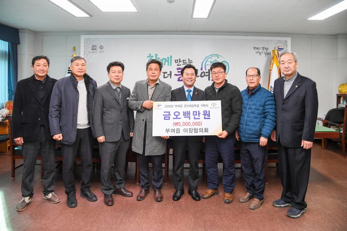 이날 기탁식에서 이광열 이장협의회 회장은 “부여군의 발전과 지역인재 육성을 위해 조금이나마 도움이 되고 싶다”며 “지역의 인재들이 바르게 성장하고 부여군의 주역으로 자랄 수 있으면 좋겠다”고 기탁 소감을 밝혔다.