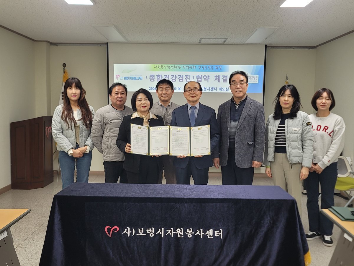 [충청25시] 보령시자원봉사센터는 3일 우수자원봉사자들의 건강관리를 위해 자원봉사센터 회의실에서 건양대학교병원과 ‘종합건강검진 협약’을 체결했다.