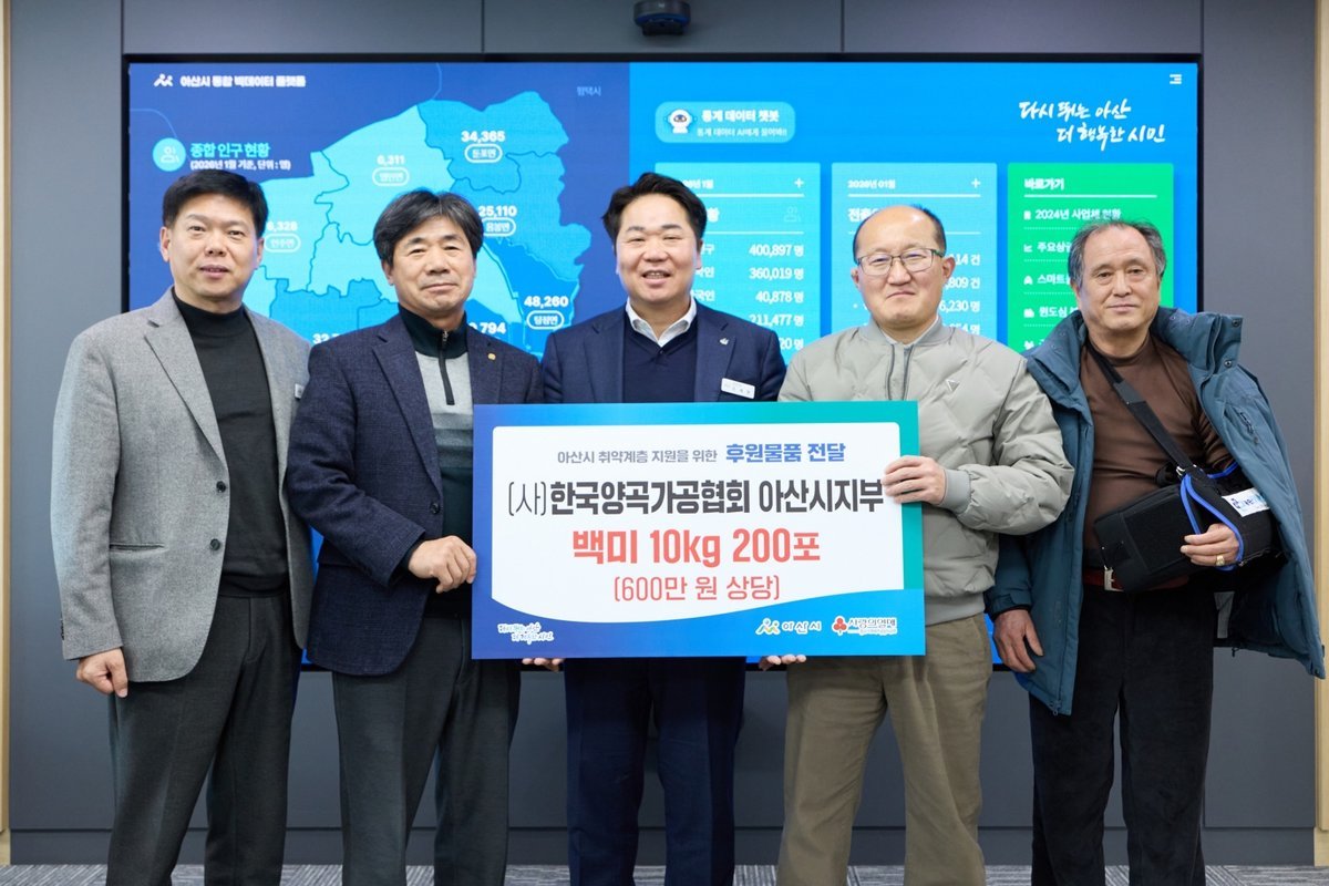 [충청25시] 한국양곡가공협회 아산시지부는 지난 12일 아산시청을 방문해 취약계층 지원을 위한 600만원 상당의 쌀 10kg 200포를 전달했다.