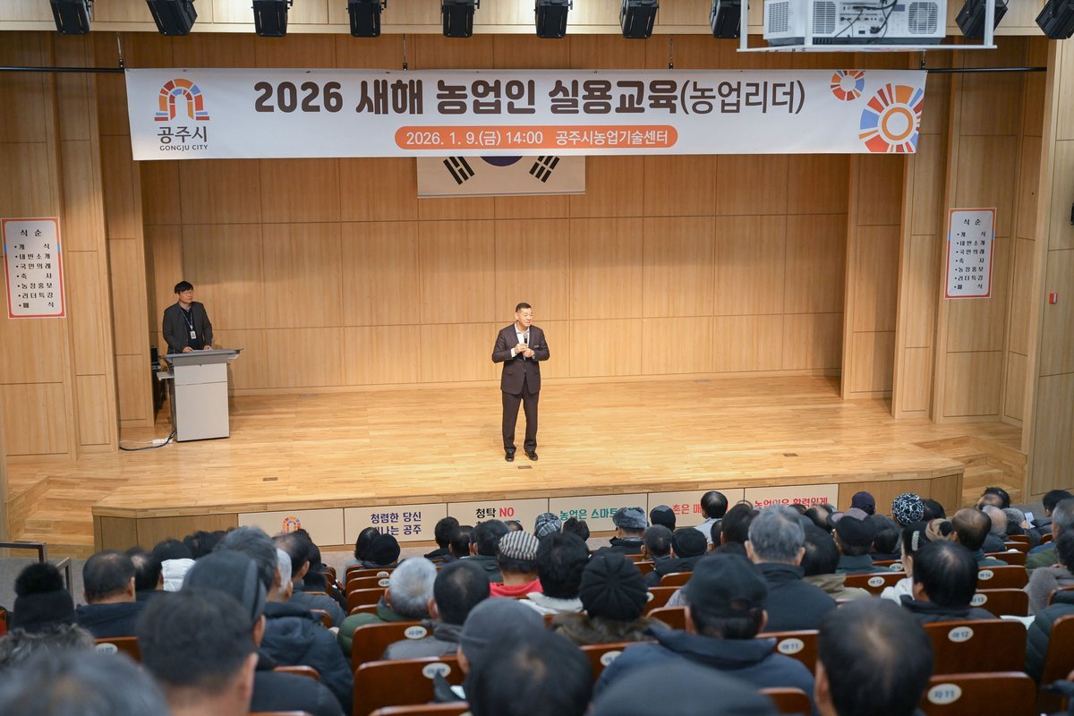 [충청25시] 공주시는 지난 9일 농업기술센터 대강당에서 이장과 농업인학습단체 임원 및 교육을 희망하는 농업인 등을 대상으로 2026년 새해 농업인 실용교육 ‘농업리더 특별과정’을 실시했다.