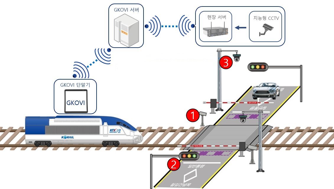 건널목 내부에 차량이나 보행자가 갇히는 비상상황이 발생하면 AI가 즉시 감지하고, 접근중인 열차 기관사에게 실시간으로 현장사진과 정보를 전송한다.