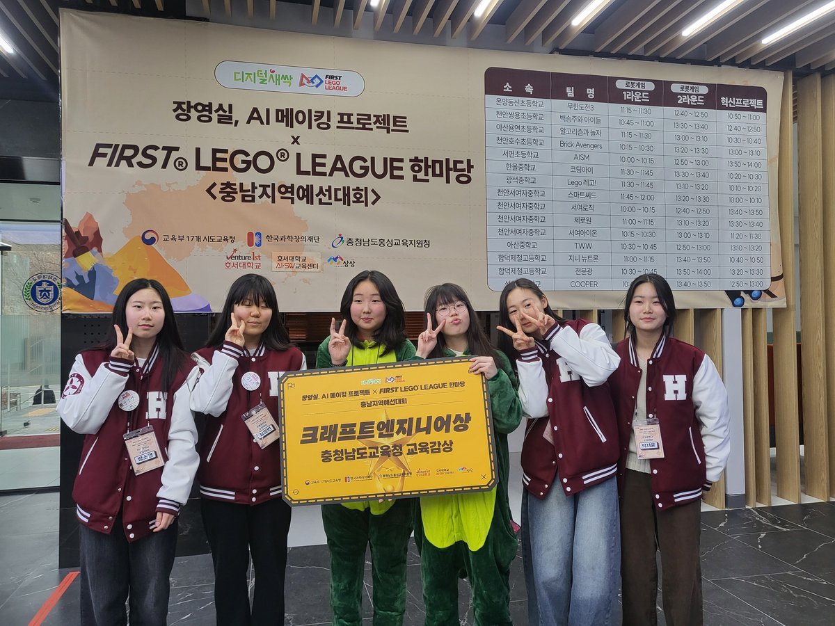 [충청25시] 한올중학교 인공지능 동아리 ‘코딩아이 ’가 ‘장영실, AI 메이킹 프로젝트 × FIRST® LEGO® LEAGUE 충남 ’대회에서 홍성교육지원청 교육장상을 수상하며 전국대회 출전권을 획득했다.