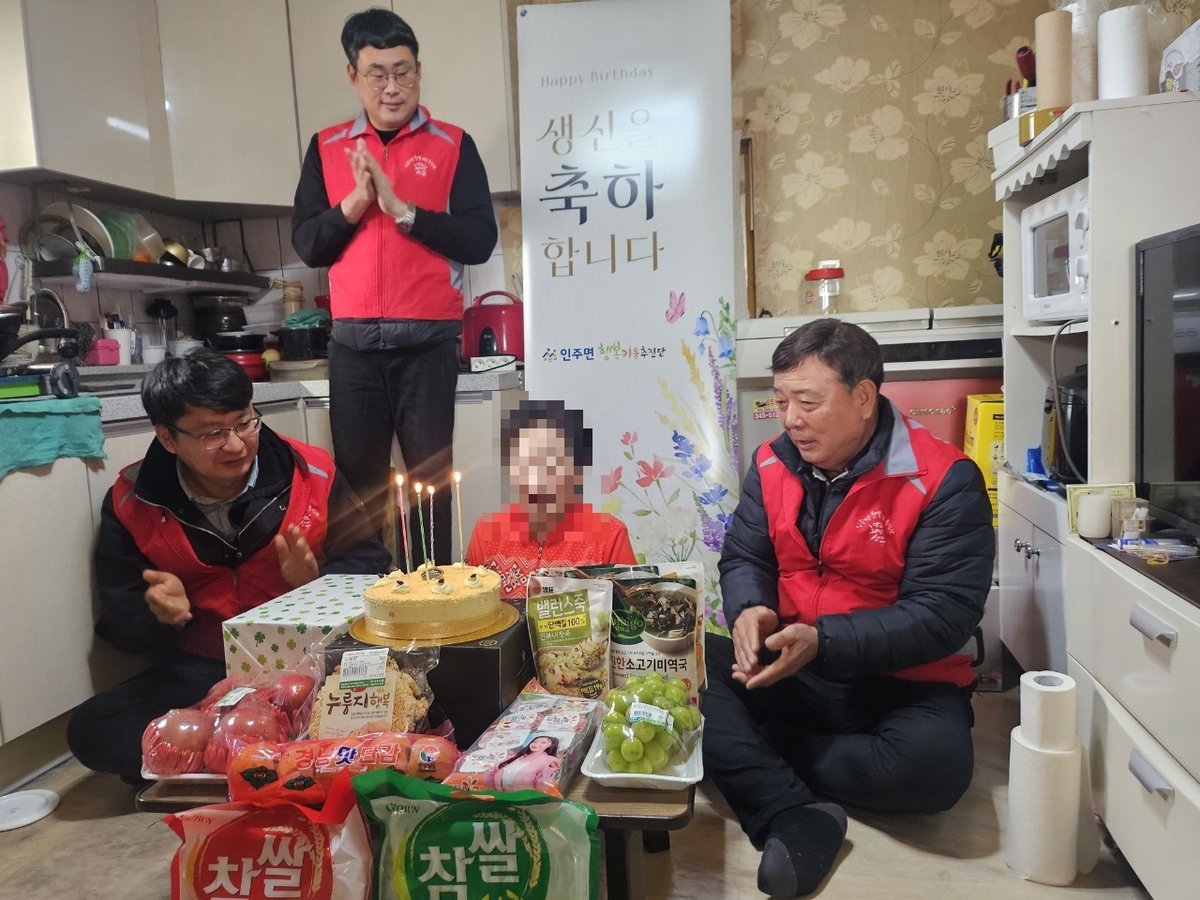 [충청25시] 인주면 행복키움추진단은 지난 26일 관내 저소득 독거 어르신 가정을 찾아 생신상을 차려드리고 축하 노래를 함께 부르며 따뜻한 시간을 가졌다.