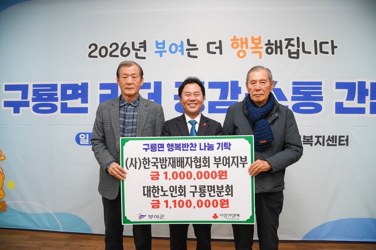 [충청25시] 구룡면은 관내 저소득층을 돕기 위해 사단법인 한국밤재배자협회 부여지회에서 100만원과 대한노인회 구룡면 분회에서 110만원의 후원금을 기부했다고 22일 밝혔다.