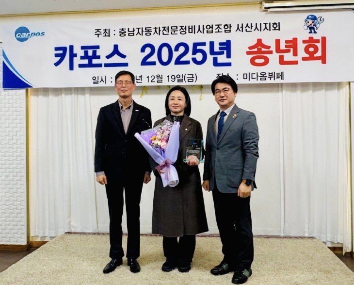 [충청25시] 서산시의회 한석화 의원은 지난 12월 19일 친환경 자동차 정비업체 지원을 위한 제도 마련과 지역 정비업계 발전에 이바지한 공로를 인정받아 충남자동차전문정비사업조합으로부터 감사패를 수상했다.