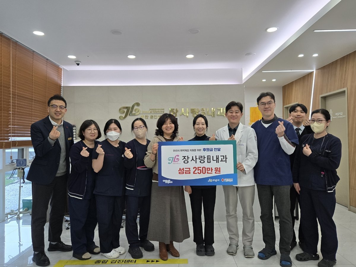 김민숙 사회복지과장은 “설 명절을 앞두고 꼭 필요한 나눔을 실천해주신 장사랑연합내과에 깊이 감사드린다”며 “후원금은 도움이 절실한 취약계층 가구에 소중히 전달하겠다”고 전했다.