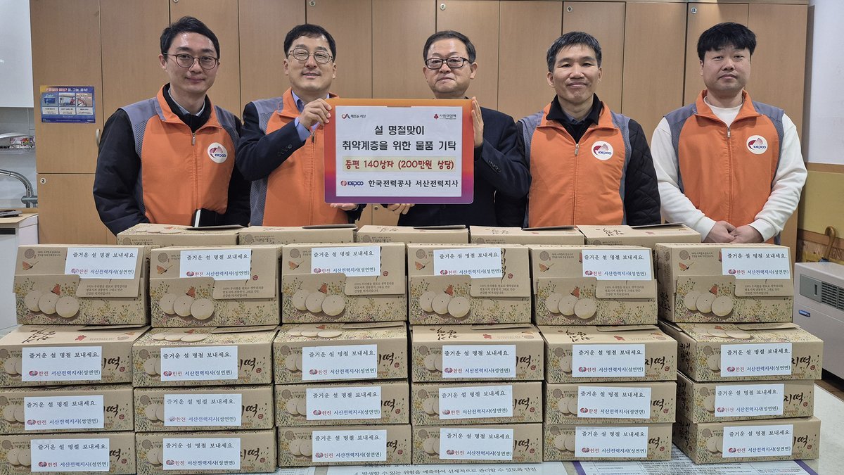 [충청25시] 한국전력공사 서산전력지사에서는 설 명절을 맞아 지역 내 어려운 이웃에게 전달해 달라며 10일 서산시종합사회복지관에 증편 140박스를 기부했다.