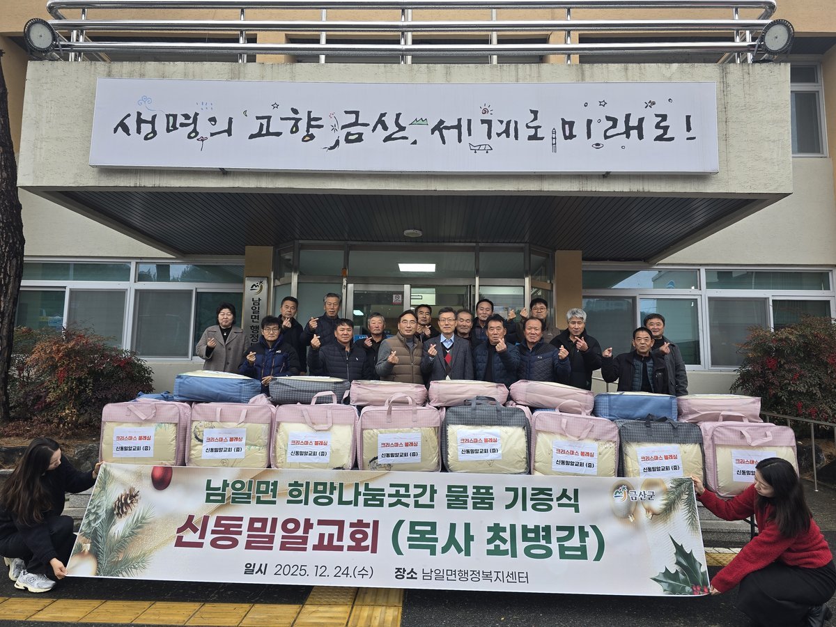 [충청25시] 금산군 남일면에 위치한 신동밀알교회는 지난 24일 지역 내 어려운 이웃을 돕기 위해 남일면 희망나눔곳간에 이불 100채를 기부했다.