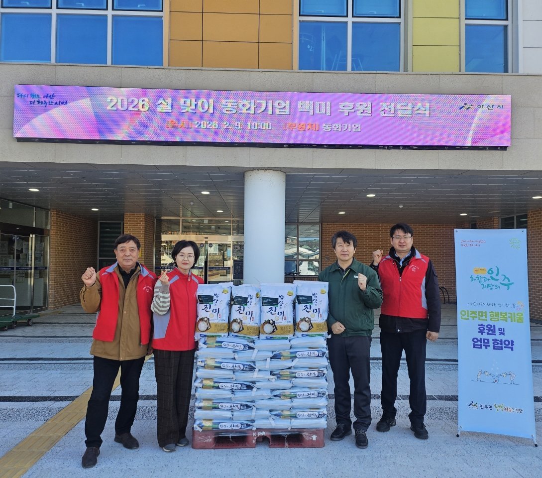 송경숙 인주면장은 "설 명절을 맞아 지역 기업과 행정이 함께 이웃을 살피는 의미 있는 나눔이 이루어져 뜻깊게 생각한다"며 "앞으로도 민·관이 협력해 모두가 함께 웃을 수 있는 따뜻한 명절을 만들어 가겠다"고 밝혔다.