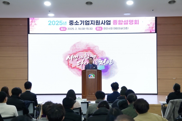 [충청25시] 천안시는 지난 18일 시청 대회의실에서 중소기업과 소상공인을 대상으로 ‘2025년 중소기업 지원사업 종합설명회’를 개최했다.