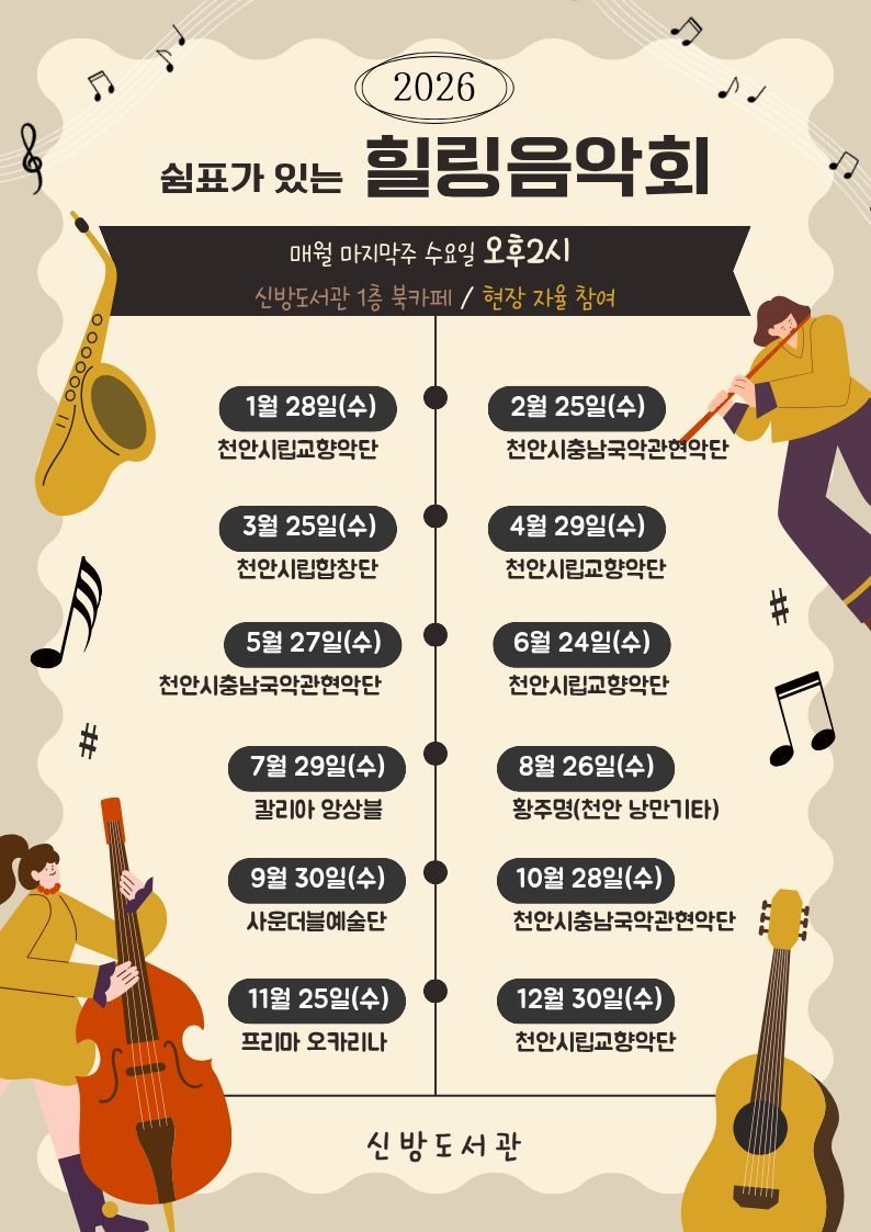 신방도서관 쉼표가 있는 힐링음악회 홍보문 천안시 제공