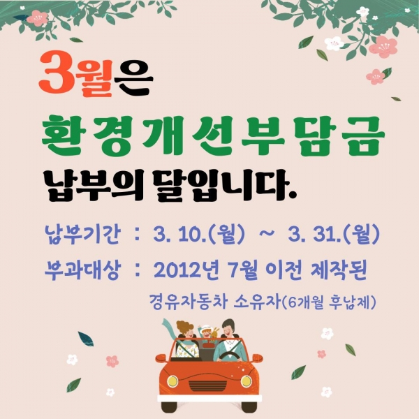 환경개선부담금을 연납하면 1월은 10%, 3월은 약 5%의 감면 혜택을 받을 수 있다.
