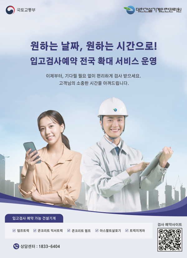 특히 예약 사이트에 손쉬운 접속을 위해 현수막, 건설기계 등록증 케이스, 리플릿 등에 QR코드를 포함해 홍보하는 등 조기에 검사 예약제가 정착되도록 노력할 계획이다.