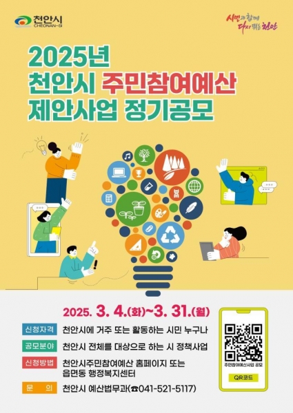[충청25시] 천안시는 오는 31일까지 2026년 예산 반영을 위한 주민참여예산 제안사업 공모를 진행한다.