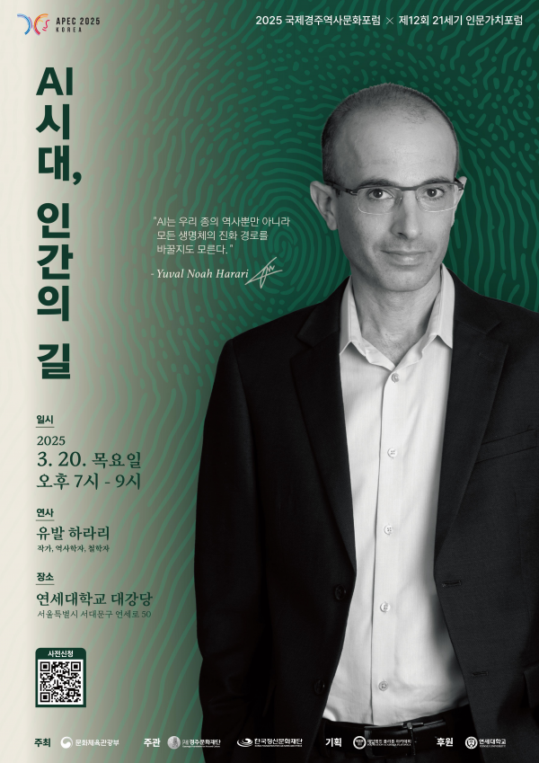 [충청25시] 문화체육관광부는 경상북도, 경주문화재단, 한국정신문화재단, 플라톤아카데미 등과 함께 3월 20일 오후 7시, 연세대학교 대강당에서 ‘2025년 아시아태평양경제협력체 정상회의’의 주제인 ‘우리가 만들어가는 지속 가능한 내일’을 문화적 관점에서 조망하는 특별 대담을 개최한다.