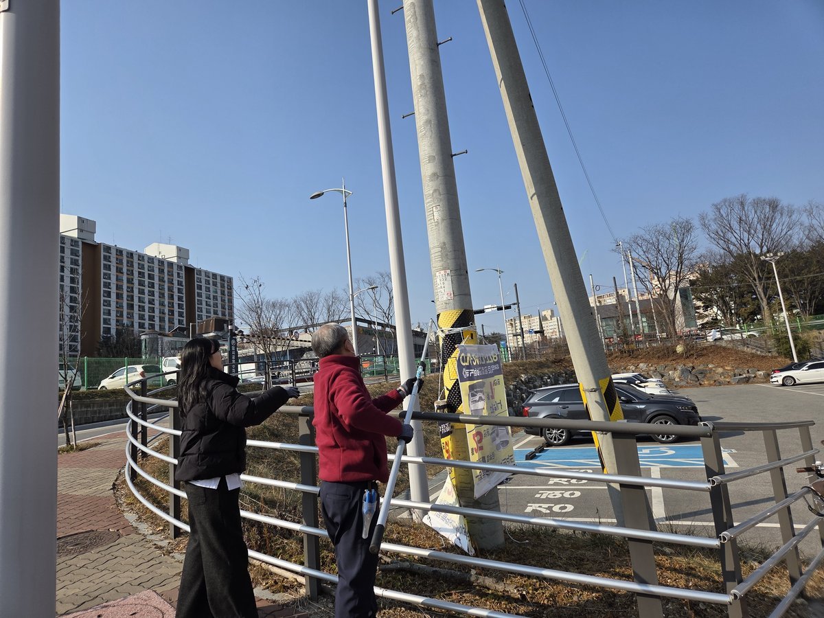 사진 3 : 충남 계룡시가 다가오는 설 명절을 맞아 도시환경 개선을 위해 불법 현수막을 제거하고 있다.