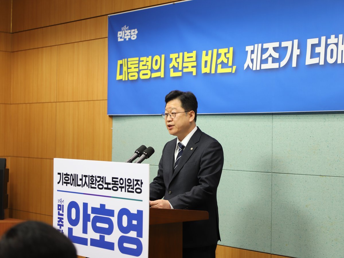 [충청25시] 전북도지사 출마를 선언한 안호영 국회의원이 23일 기자회견을 열고 "대통령의 전북 비전이 현실이 되려면 반도체와 피지컬AI 제조가 결합돼야 한다"며 국가 전략 제조 산업의 전북 배치를 공식 제안했다.