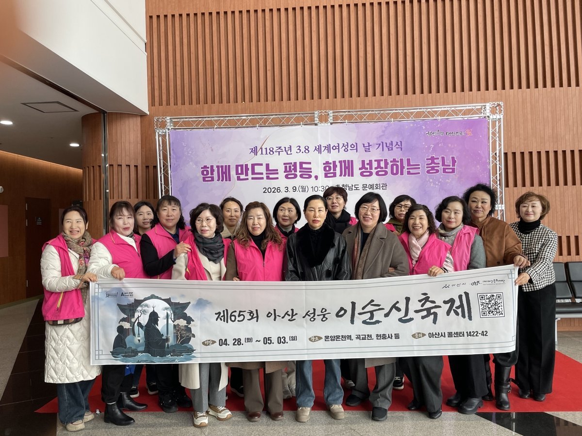 [충청25시] 아산시여성단체협의회는 9일 제118주년 3 8 세계여성의날을 기념해 열린 충청남도 및 아산시 기념행사에 참석해 성평등 가치 확산과 여성의 사회적 역할 강화를 위한 의지를 다졌다.