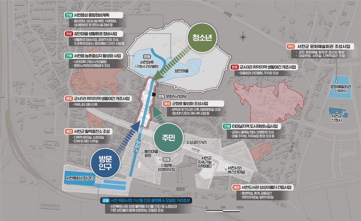 한편 구도심 내 주요 13개 사업은 총 1600억원 규모로 추진되고 있으며 이 중 핵심인 ‘서천읍 군청로 활성화 사업’은 2026년부터 5년간 총 150억원이 투입되는 지역균형발전 사업이다.