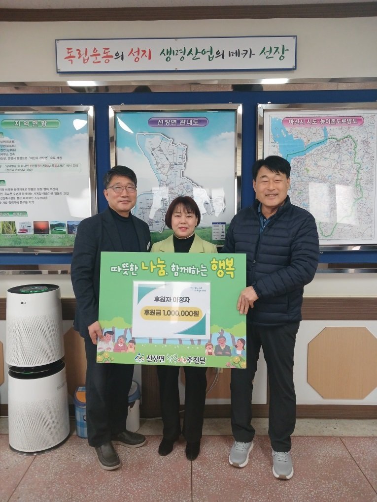 이정진 선장면장은 "주민자치회 활동과 더불어 나눔까지 실천해 주신 이정자 후원자께 감사드린다"며 "앞으로도 복지 사각지대 해소와 취약계층 지원을 위한 다양한 사업을 추진해 따뜻한 지역공동체를 만들어 가겠다"고 말했다.