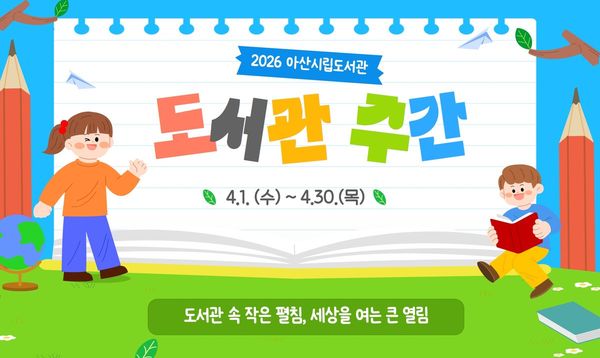 [충청25시] 아산시립도서관은 4월 도서관 주간을 맞아 4월 1일부터 30일까지 한 달간 시민과 함께하는 다양한 독서 문화 행사를 운영한다.