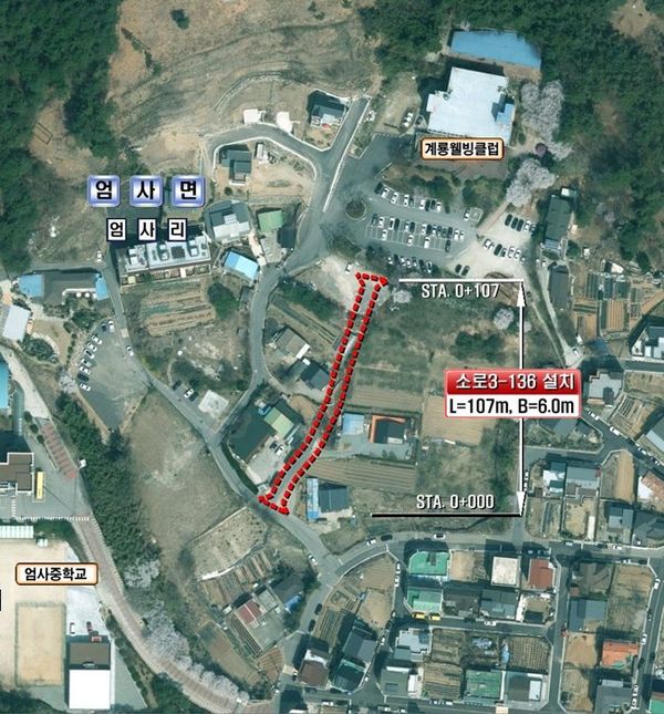 [충청25시] 충남 계룡시는 엄사면 엄사리 일원의 교통 환경을 개선하고 인근 중학교 주변의 안전한 보행권 확보를 위해 ‘엄사리 도시계획도로 개설공사’를 본격 추진한다고 밝혔다.