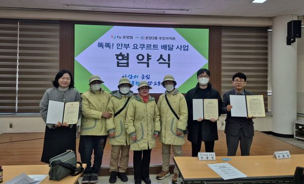 [충청25시] 아산시 온양3동 주민자치회는 13일 hy 온양점과 '똑똑, 요구르트 배달사업'추진을 위한 업무협약을 체결했다.