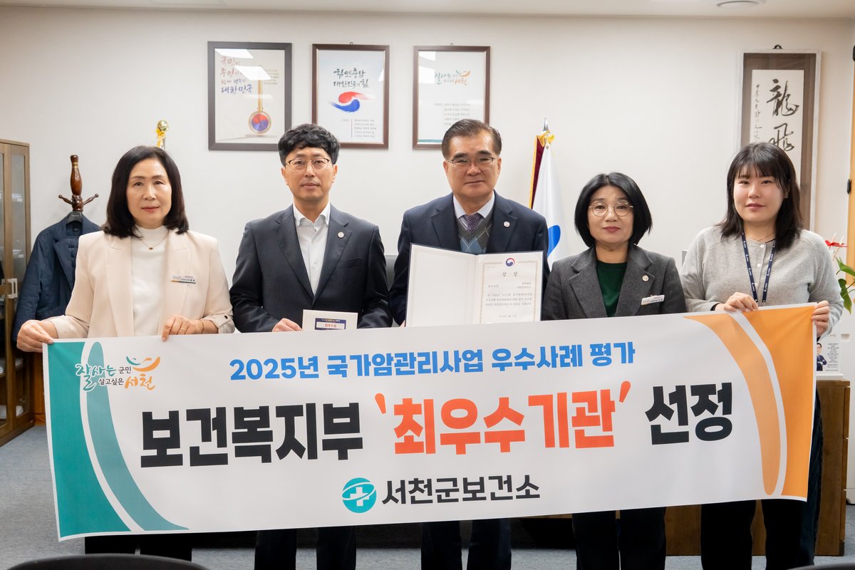 [충청25시] 서천군보건소는 국가암검진 사업 추진 사례가 우수사례로 선정돼 ‘2025년 국가암관리사업 우수사례 평가’에서 보건복지부장관상 최우수상을 수상했다고 밝혔다.