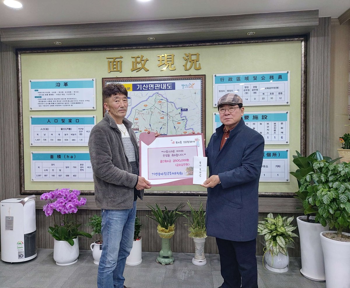 이번 출산축하금 지원은 저출산 고령화 사회 속에서 기산면에 태어난 아이들이 건강하게 성장하고 꿈을 키워갈 수 있도록 돕기 위한 후원회의 따뜻한 뜻을 담아 마련됐다.