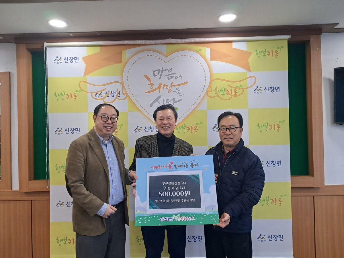 우신설비건설은 아산시 전역에서 꾸준한 나눔 활동을 이어오고 있는 사회공헌 기업으로 이번 후원금은 신창면 내 저소득 가구, 독거노인, 장애인 가정 등 복지 사각지대 취약계층 발굴 지원 및 민 관 협력 기반의 복지 안전망 구축에 활용될 예정이다.
